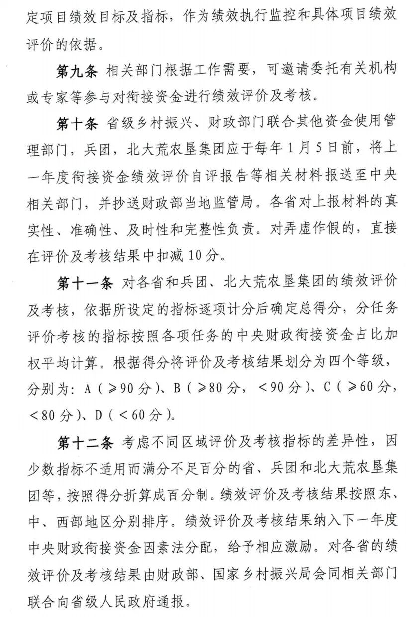 关于印发《衔接推进乡村振兴补助资金绩效评价及考核办法》的通知