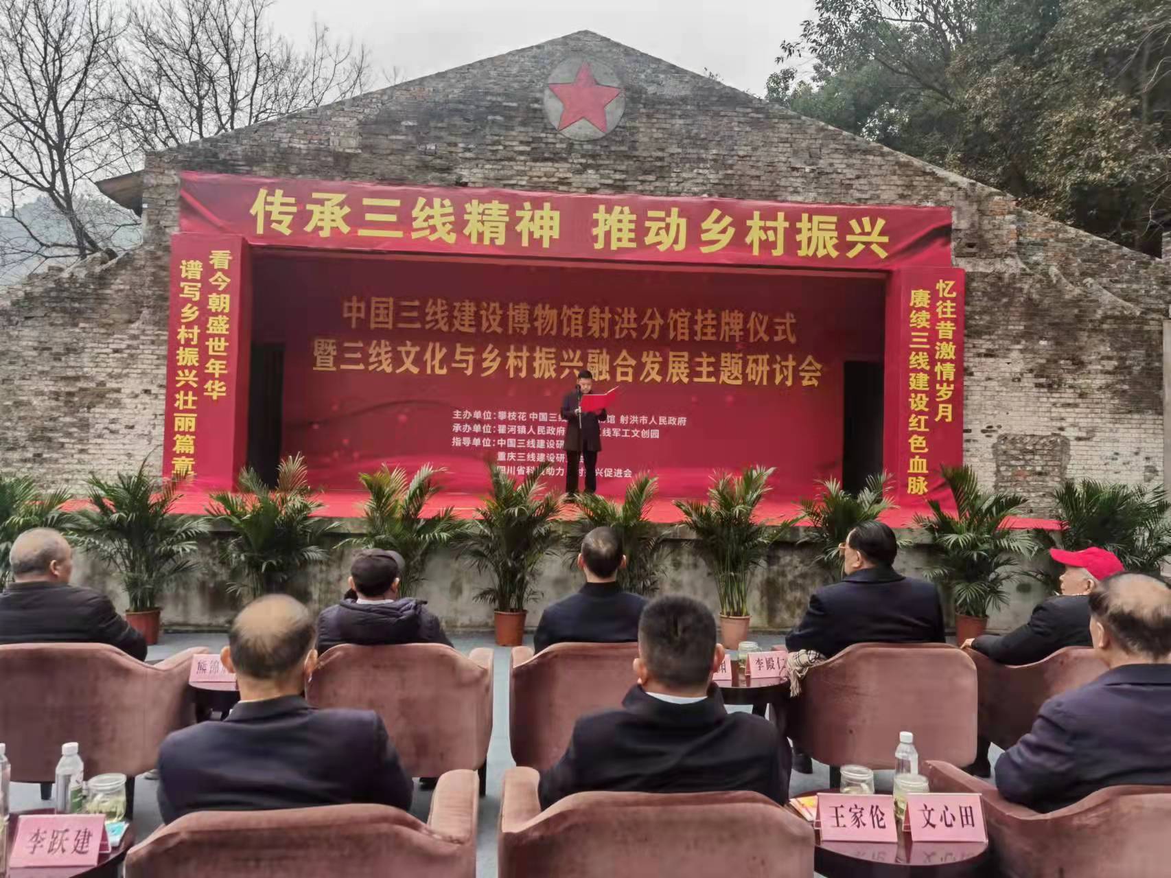 12月23日,攀枝花中国三线建设博物馆射洪分馆揭牌仪式暨三线文化与乡村振兴融合发展主题研讨会,在射洪3536三线军工文创园隆重举行。其间,举行了四川省科技助力乡村振兴促进会向四川彩皇农业科技有限公司授牌“副会长单位”仪式。