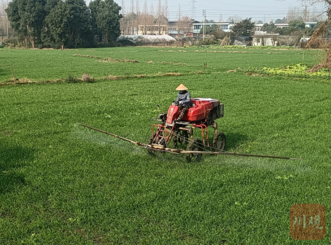 3月2日,成都市双流区黄水镇桃荚社区,1000余亩小麦绿意萌动,拔节生长。
